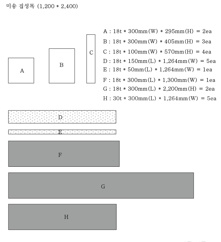 D : 18t * 150mm(L) * 1,264mm(W) = 5ea